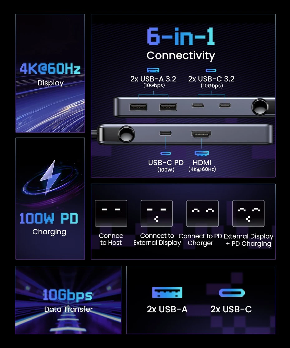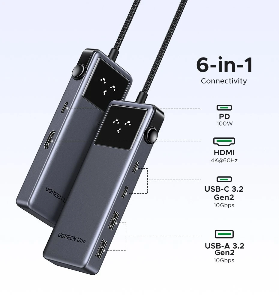 Elevate your connectivity and productivity with the UGREEN 6-in-1 Type-C Hub, the essential accessory for any tech-savvy individual looking to maximize their device's potential.